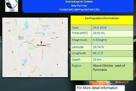 No immediate reports of damages or casualties were reported following a slight earthquake which was recorded this morning, the Department of Meteorology and Hydrology (DMH) announced.