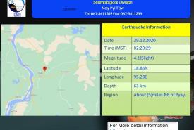 No immediate reports of damages or casualties were reported following a slight earthquake which was recorded early this morning, the Department of Meteorology and Hydrology (DMH) announced.