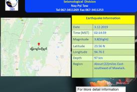 No immediate reports of damages or casualties were reported following a slight earthquake which was recorded this morning, the Department of Meteorology and Hydrology (DMH) announced.