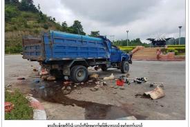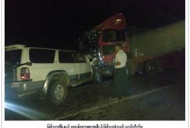One person was killed and four others slightly injured in a head-on collision between a car and a 12-wheeled truck in Myittha Township, Mandalay Region.