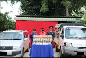 A combined team from Security forces and Anti-Drug Squad raided the house of Sai Khun in Hweye Village, Tachilek Township, Shan State on 23 September and arrested Sai Khun, Li Khaw, Sai Saing Hline, Li Ya and Law Yoe along with 499800 stimulant tablets, according to information released by the Myanmar Police Force.