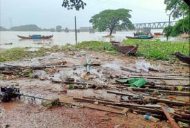 Three family members went missing after a home washed away by floodwaters from the Sittoung River following the heavy rains in Kyaikto Township, Mon State on September 20.