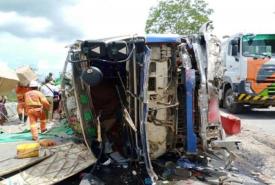A man was killed and one other injured after a 12-wheeled truck overturned in Thabeikkyin Township, Mandalay Region, the Ministry of Home Affairs said.