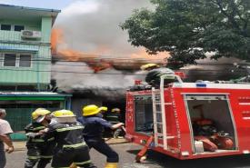 Three houses were burnt to ashes in a fire in Sangyoung Township, Yangon Region, the Ministry of Home Affairs reported.