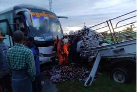 One man was killed and two others sustained minor injuries in a head-on collision between a passenger bus and a light truck in Labutta Township, Ayeyawady Region.