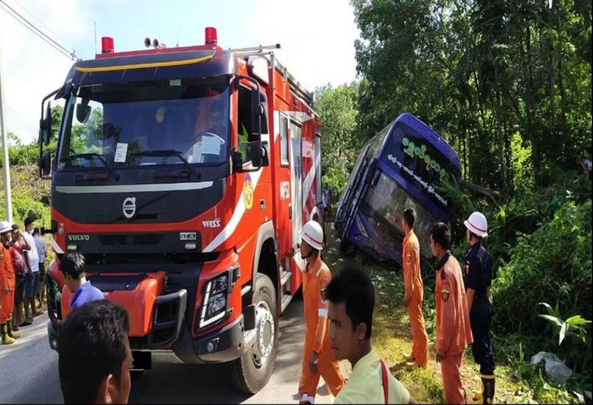 Two people were killed and 12 others slightly injured a passenger bus fell into drainage in Yebyu Township, Taninthayi Region, the Ministry of Home Affairs reported.