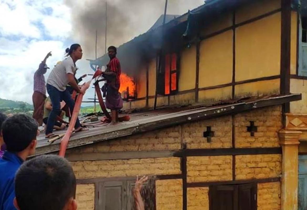 A fire broke out in the town of Aungpan at about 1:45 pm on 3 July, and destroyed a house, causing a loss of K 380000, according to the township Fire Services Department.
