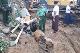 A construction worker unearthed an old shell which are believed to be from Japanese occupation period during WWII, in Mohnyin Township, Kachin State.