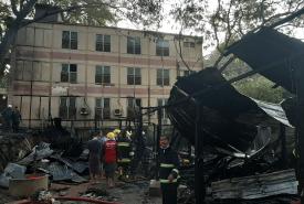 At least three firefighters were killed and nine others including four civilians injured Wednesday after a building collapsed following a fire incident in Indian-controlled Kashmir, police said.