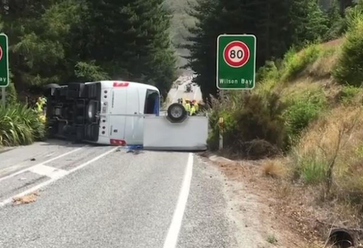 About 20 Chinese tourists injured after bus rolls in New Zealand