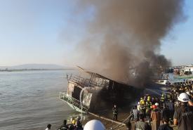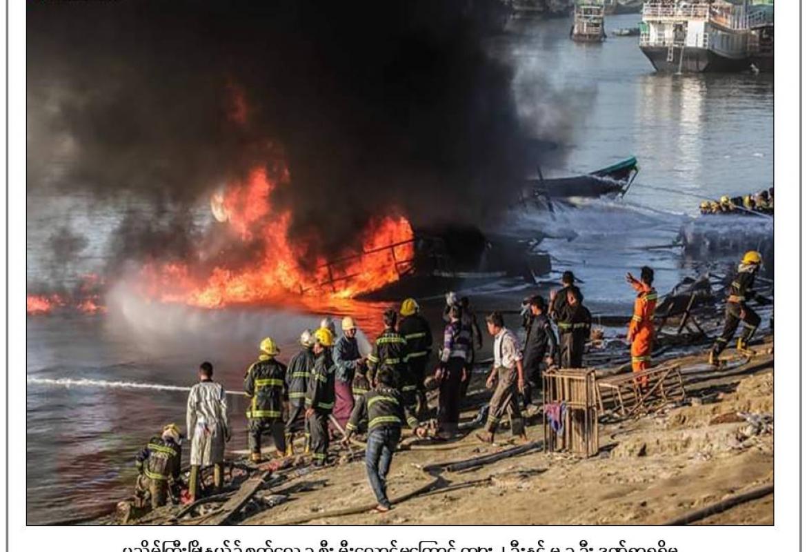 A vessel that plies the routes between Mingun and Mandalay in the Ayeyawady River caught fire at Mayanchan Port in Patheingyi Township, Mandalay Region at about 4 pm on 17 January.