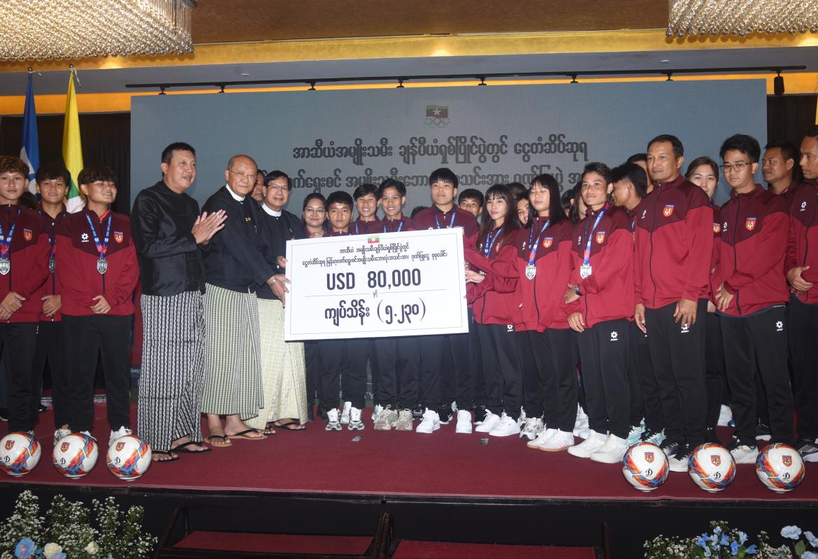 State honours Myanmar national women’s fifootball team which advances to final of AFF MSIG Serenity Cup 2025