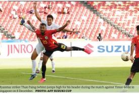 MYANMAR national men’s football team shaped a 2-0 win over Timor-Leste during their second match of the ASEAN Suzuki Cup tournament in Singapore yesterday.