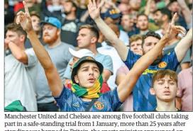 MANCHESTER United and Chelsea are among five football clubs taking part in a safe-standing trial from 1 January, more than 25 years after standing was banned in Britain, the