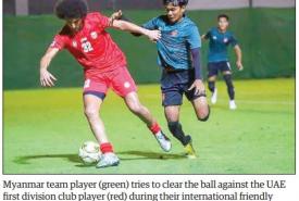 THE Myanmar U-23 team trained in the UAE in preparation for the 2022 AFC U-23 Championship drew 2-2 with the UAE first division club Al Jazeera Al Hamra FC in an international friendly football match played in Dubai on 24 October.