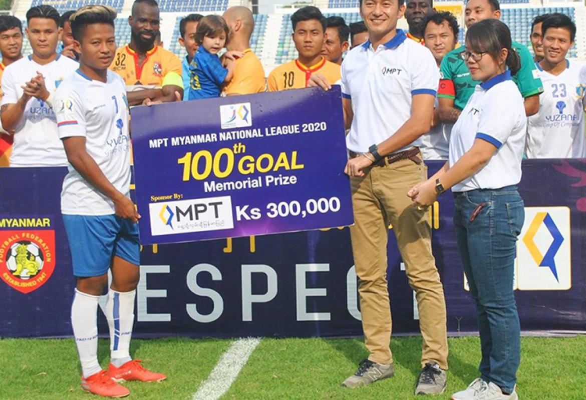 The final match of an invitational men’s football tourney took place in conjunction with a prize awarding event at the township sport ground in Myaungmya, Ayeyawady Region on 2 March.