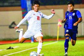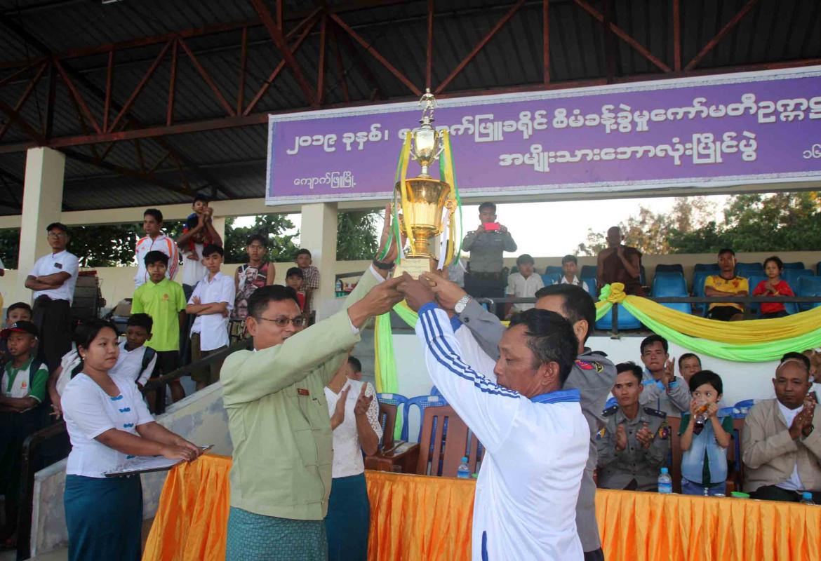The final match of the District Management Committee’s Trophy men’s football tourney was held in conjunction with a prize awarding event at the township sports ground in Kyaukphyu, Rakhine State yesterday evening.