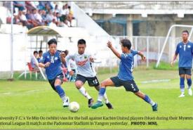 IN the Week-8 match of the MPT Myanmar National League II 2019 yesterday, Kachin United defeated University F.C. with a score of 2-1 at the Padonmar Stadium in Yangon.