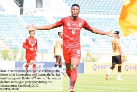 TAUNGGYI based Shan United defeated Rakhine United 4-0 in the 1st leg of the the General Aung San Shield 2019 semifinal at Thuwunna Stadium in Yangon yesterday.