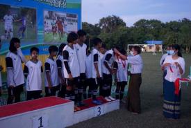 The final match of the region women’s Sports Federation Patron’s cup inter-Township U-18 women’s football took place in conjunction with prize awarding event at the District Football Ground in the town of Magway, Magway Region yesterday evening.