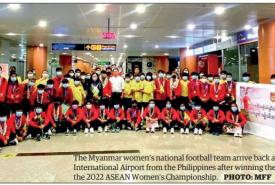 THE Myanmar national women’s team returned to Yangon at 8:00 pm on 17 July after winning the bronze medal with a 4-3 victory over Viet Nam in the thirdplace ..............