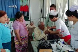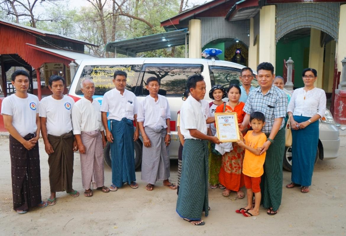 A ceremony to donate an ambulance to a healthcare association was held in conjunction with a merit sharing event at a religious building in Panai Village, Mahlaing Township, Mandalay Region on 19 April.
