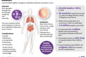 A New York county hit by a measles outbreak declared a state of emergency Tuesday and banned non-vaccinated minors from public places in a bid to prevent the once-eliminated disease from spreading.
