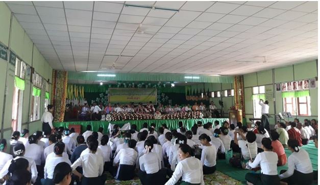 In commemoration of World Teachers Day, a ceremony to honour teachers was held at the Basic Education High School in the town of Thandaung, Thandaunggyi township, Kayin state this morning.