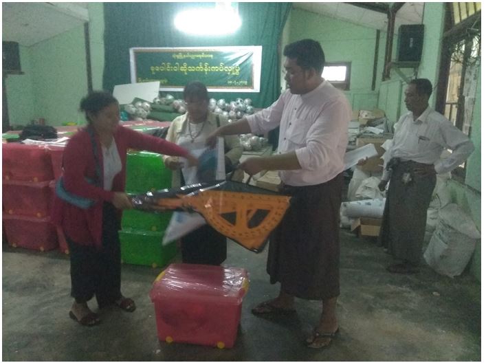 Teaching aids including a kit box containing 45 types of stationeries, one bag of set square, map of World and map of Myanmar were provided to Grade-6 students in 50 schools including post-primary schools and sub-middle schools in the Township.
