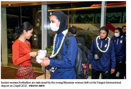The Iranian women’s national football team, which will com­pete with the Myanmar wom­en’s national football team in the qualifiers for the 2024 Par­is Olympics women’s football tournament (Asia Zone), ar­rived in Yangon on the evening of 2 April.