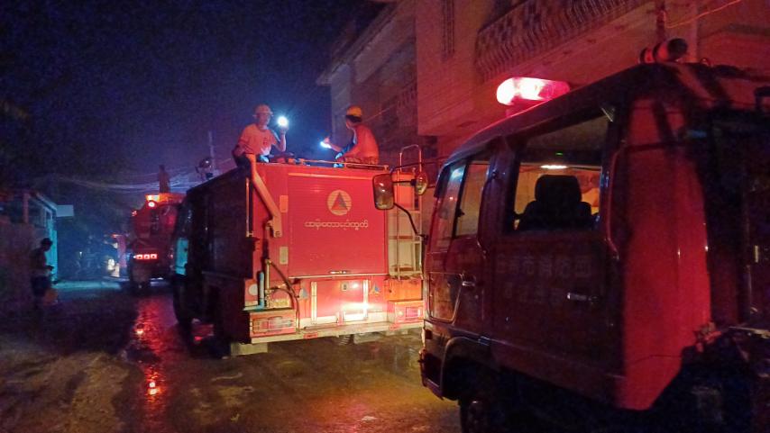 A combined team comprising fire fighters from the Township and District Fire Services Department led by U Than Tun Oo, Director of the Region Fire Services Department rushed to the incident scene to put out the fire in cooperation with local police members, locals and auxiliary fire fighters with seven fire engines and five water tankers, and the blaze was completely extinguished at about 10:35 pm.