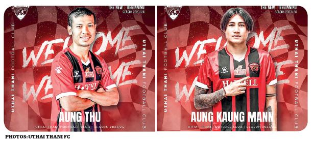 Uthai Thani FC, which has qualified for the 2023-2024 season in the Thai League-1, has signed two Myanmar national team strikers: Aung Thu and Aung Kaung Mann.