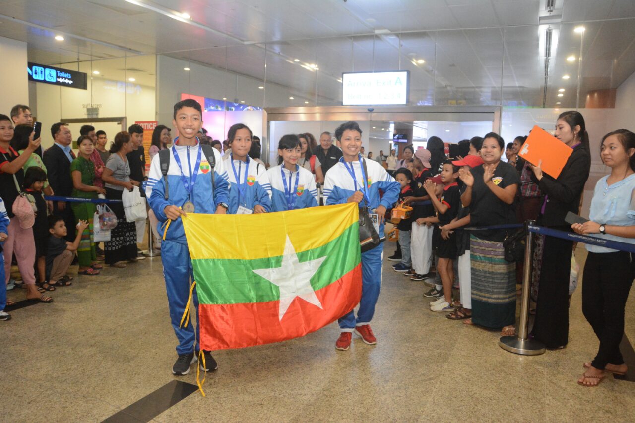 The team was welcomed by officials from Thanlyin Taekwondo club, teachers and students from Thanlyin BEHS 1 and their relatives at the airport.—Than Win ( Thanlyin)