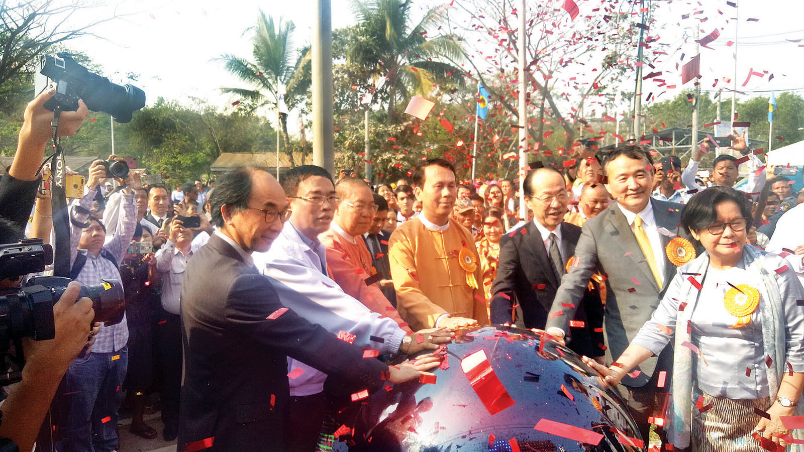 The Yangon Region Chief Minister, the Yangon Region Hluttaw Speaker, the Japanese Ambassador, the Deputy Minister of the Ministry of Construction, the Japanese MLIT Deputy Minister, the JICA Myanmar Office Resident Representative, and the Yangon Region Industry, Electricity and Transportation Minister pressed the button and spread the scented water on the stone monumental plaque. —MNA (Translated by Aungthu Ya)