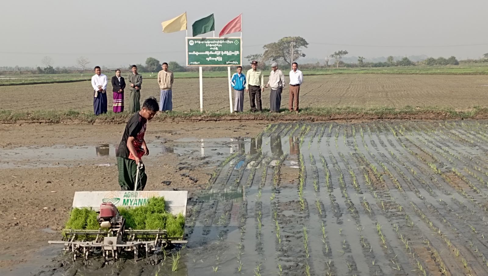 Farmers from 31 village tracts in Thegon Township are growing summer rice varieties such as Yadana Toe, Vietnam, Re-90, and YSR-1. Of the total planting area, 58.44% has been cultivated using advanced methods including seeder systems, Drum seeders, and hand-held self-propelled rice planters.