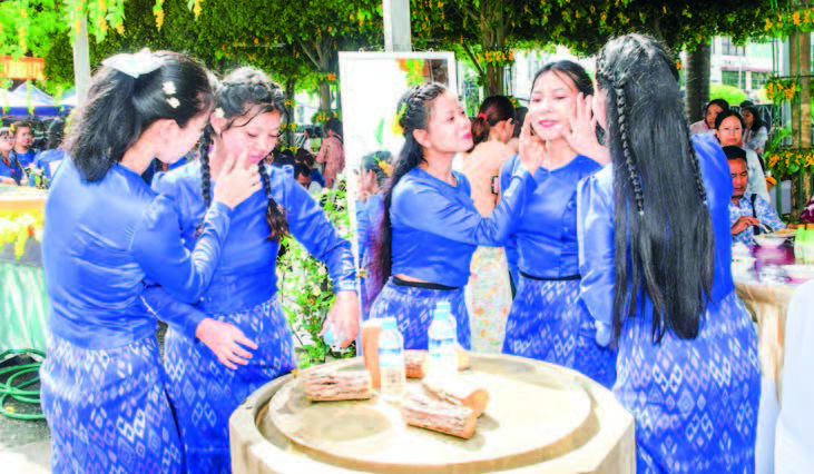 At the Maha Bandoola Park near Yangon City Hall, citizens played water peacefully and young women proudly promoted Myanmar Thanaka traditions, aiming for recognition as an intangible cultural heritage.