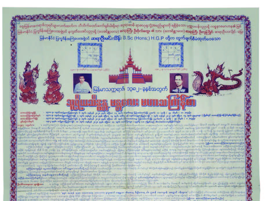 Thingyan Bulletin is issued by State board of Thingyan Bulletin composed of astrologers, astronomer. Professors of Vedas, metrologists, Seismologists and weather forecasters and wise propheters. Better to read Thingyan Bulletin yourselves. The gist of it is Myanmar as well as the world would face many challenges including great diseases. But through good will, and co-operation all humans of the world and Myanmar would survive. We all need to keep metta loving kindness to one another.