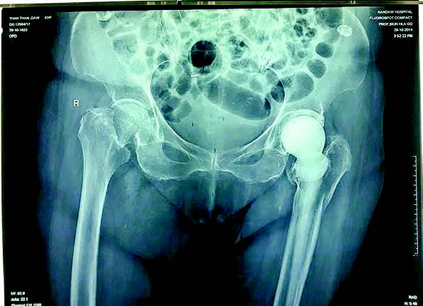 In January 1960, my late father first used an ivory prosthesis to replace the fractured thigh bone of an 83-year-old Burmese Buddhist nun, Daw Punya. He had to go to an ivory carver in the city of Mandalay to sculpt an ivory hip prosthesis. After his return from the University of Pennsylvania, doing his post-graduate studies for 3 1/2 years, my father was posted as Head of the Department of Orthopaedic Surgery at Mandalay General Hospital from November 1958 to June 1975. And he was posted as chief of orthopaedic surgery at Rangoon (now Yangon) General Hospital from June 1975 until his retirement in October 1980. From 1960 to 1980, Dr San Baw and his junior colleagues operated upon and inserted ivory hip prostheses to replace the fractured thigh bones of patients whose ages ranged from 13 to 87. Definitely one, if not two, persons who Dr San Baw inserted ivory hip prostheses are still alive as of mid-April 2025. On or about December 1969, a person from a village near Mandalay at the age of about thirteen was inserted with an ivory hip prostheses by my late father and his junior colleagues in an operation which lasted for about four hours (as told to me by the patient herself). The patient’s name is Daw Than Htay (born around November 1956). Up till about mid-2021, she lived in a village about a hundred and fifty miles from Mandalay. She currently lives in a monastery in Mandalay. Sometime in 2024, an X Ray was taken of her left hip (about 55 years after her insertion of the ivory prosthesis), and even though the prosthesis was broken, there has been a creeping substitution or ‘biological bonding’ between bone and ivory, the 2024 X-rays show.
