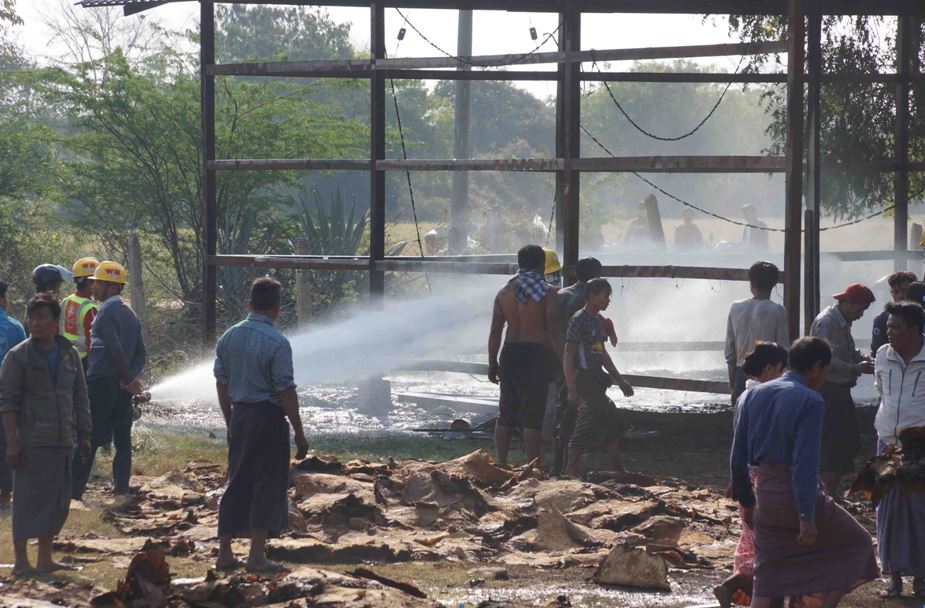 Firefighters led by U Aung Ko Thant, deputy commander of Myingyan District Fire Services Department rushed to the scene to put out the fire. In collaboration with local people, the firemen managed to put out the fire in 12 minutes, using five fire engines, seven water trucks.
