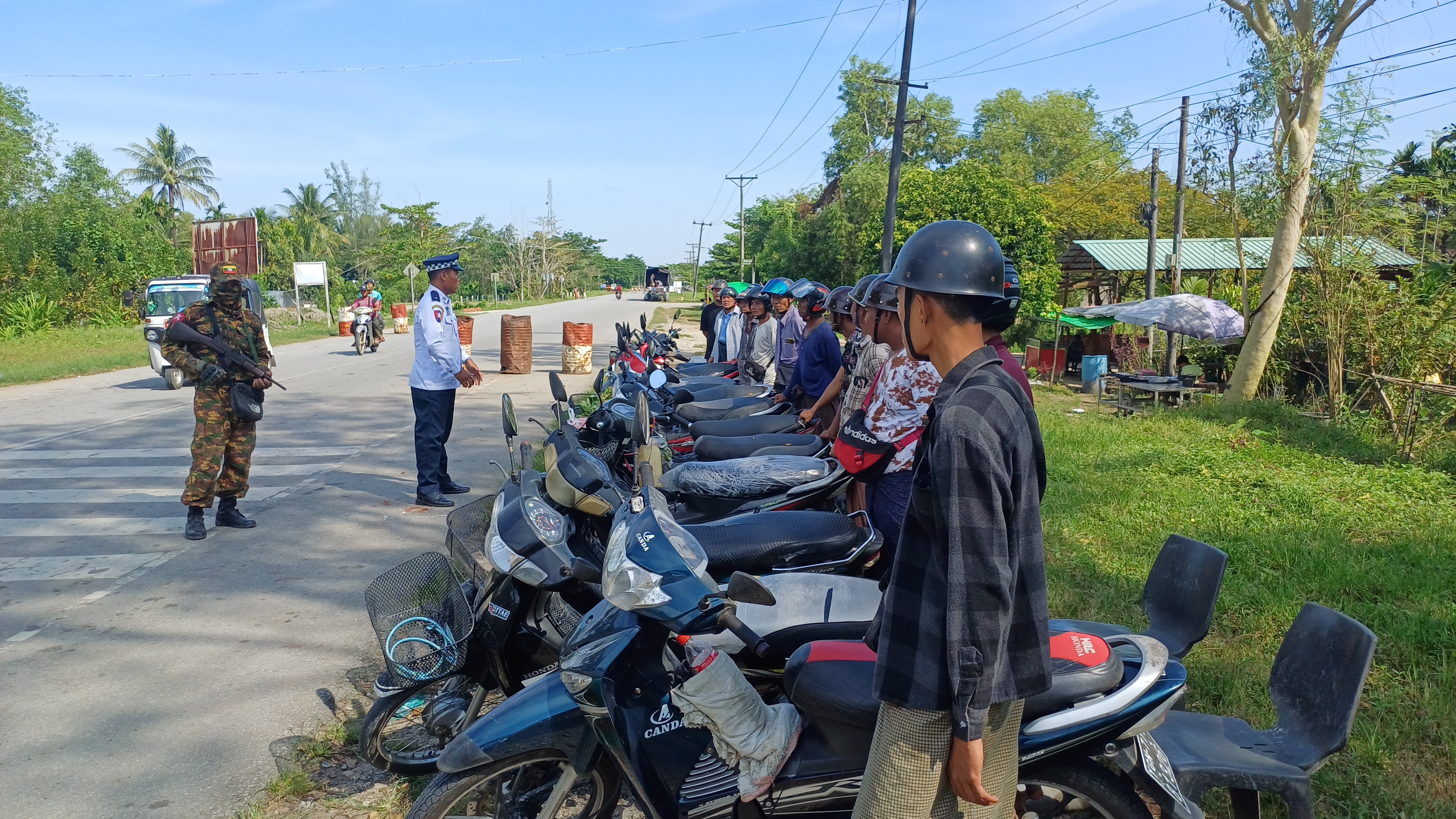 Officials from the No. 80 Traffic Control Unit (Pyapon) conducted a traffic and road safety awareness lecture this morning along the Pyapon–Kyaiklat Road, near the entrance and checkpoint of Pyapon, Ayeyarwady Region.
