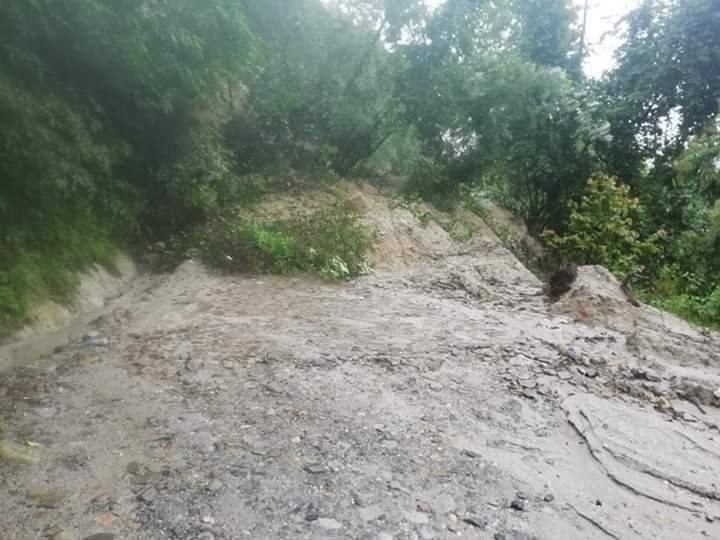 Torrential downpours caused landslide on Momauk-Lweje road section in Bhamo District, Kachin State this morning. As a consequence, traffic is being temporarily suspended due to the landfall.