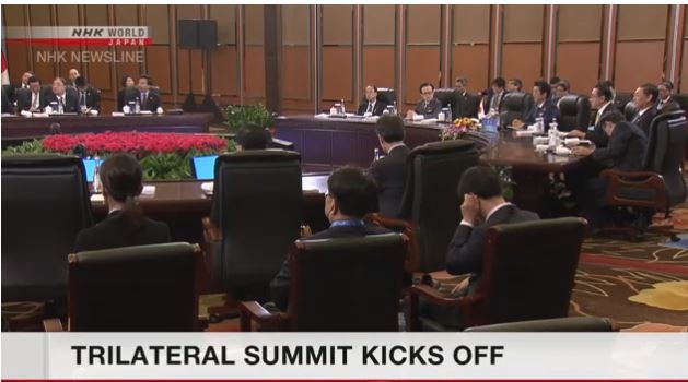 Japanese Prime Minister Shinzo Abe, Chinese Premier Li Keqiang and South Korean President Moon Jae-in are in Chengdu, Sichuan Province.