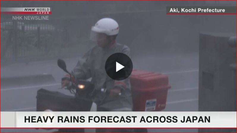 Western Japan could expect downpours and localized thunderstorms through Thursday evening, and eastern Japan through Friday.