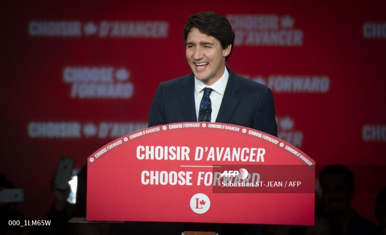 Television projections as of 2 am Tuesday (0600 GMT) declared the Liberals winners or leading in 156 of the nation's 338 electoral districts, versus 122 for his main rival Andrew Scheer and the Conservatives, after polling stations across six time zones closed.