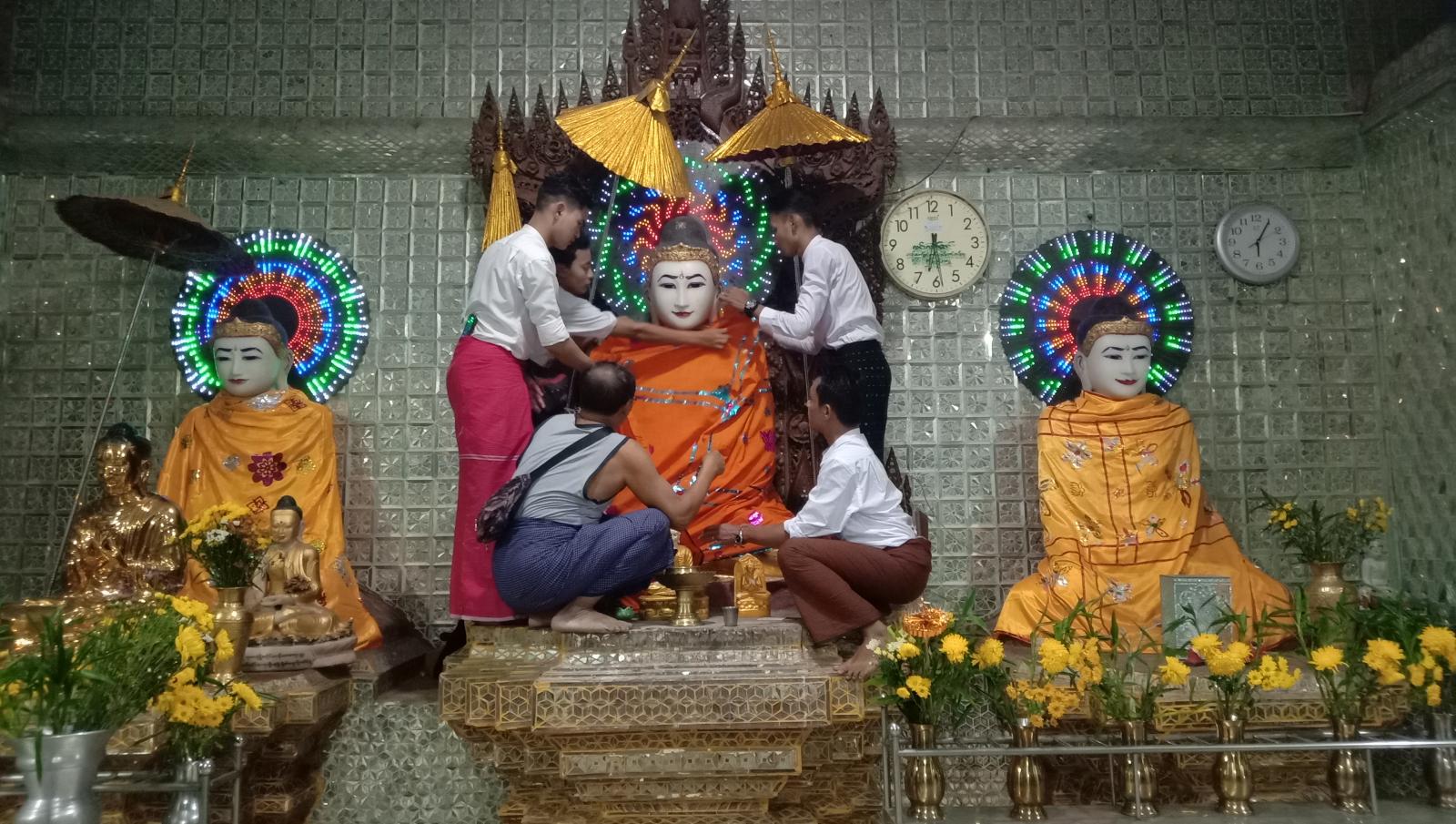 The Mathoe Robe-Weaving Ceremony will involve seven weaving teams, and the robes will be presented to the Buddha images at designated temples within the Shwesandaw Pagoda compound at 4:30 am on the full moon day of Tazaungmone.