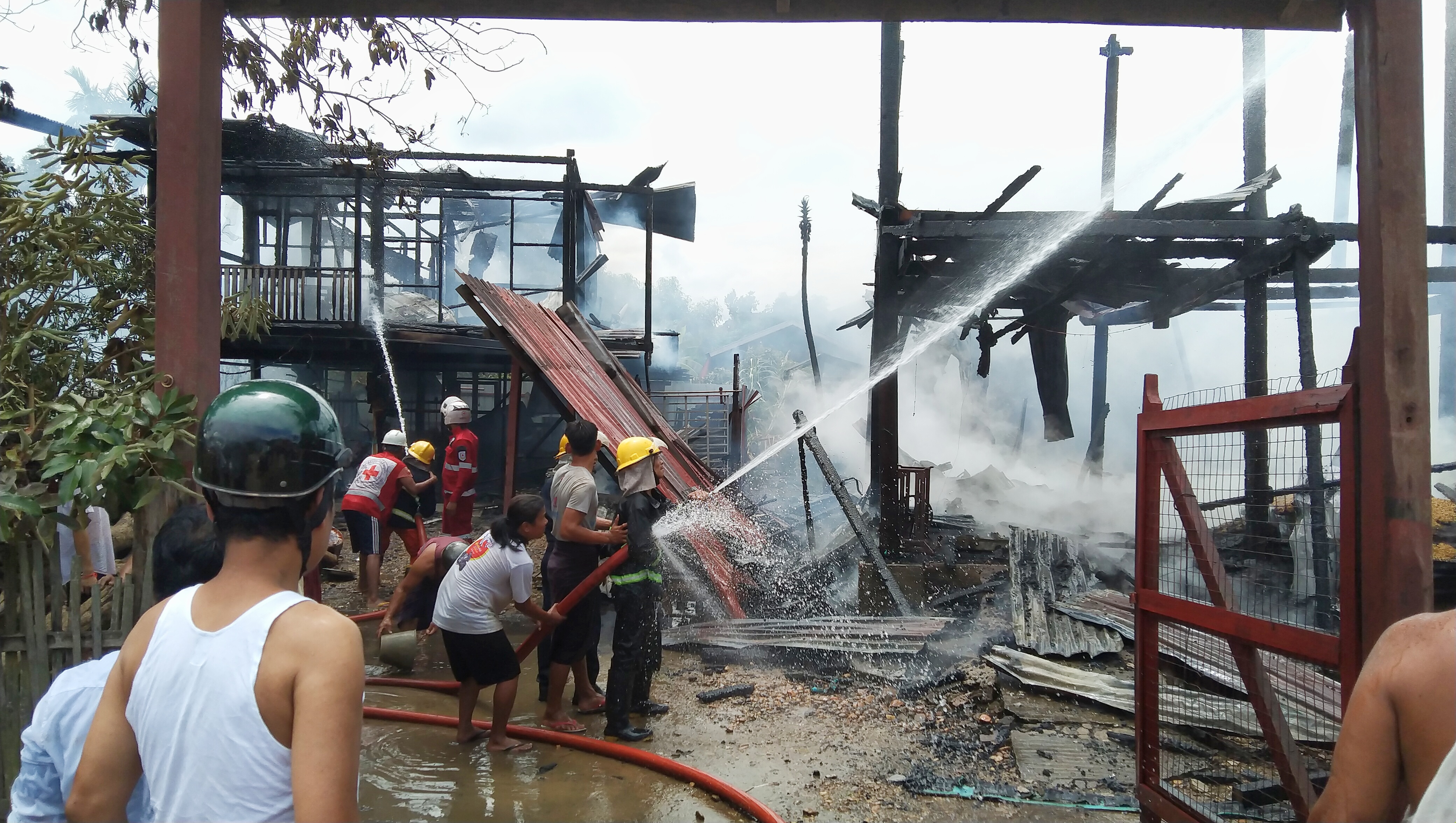 The incident occurred at approximately 10:50 a.m. at the two-story residence of U Myint Aung, located in Natkyikon Ward. The house, measuring 27 feet long by 18 feet wide and 18 feet high, with a corrugated iron roof and wooden floor, was completely destroyed. The fire is believed to have been caused by an electrical short circuit.