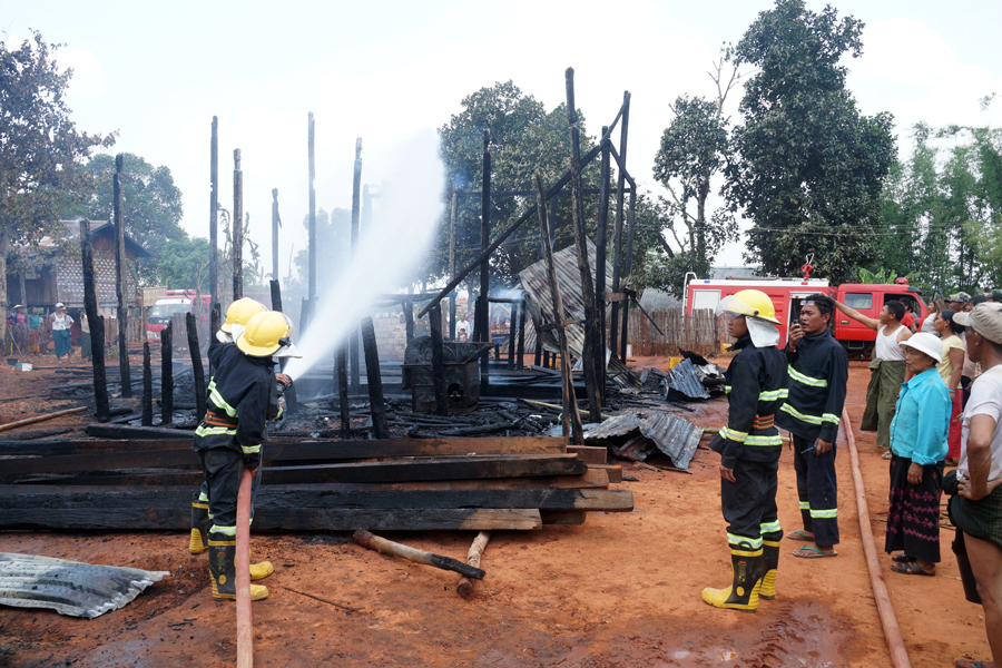 A fire broke out in U Paw Kin’s house in konesa village, Naunghee village-tract, Namsam Township, Shan state (South) at 12:15 pm today, consuming two houses.