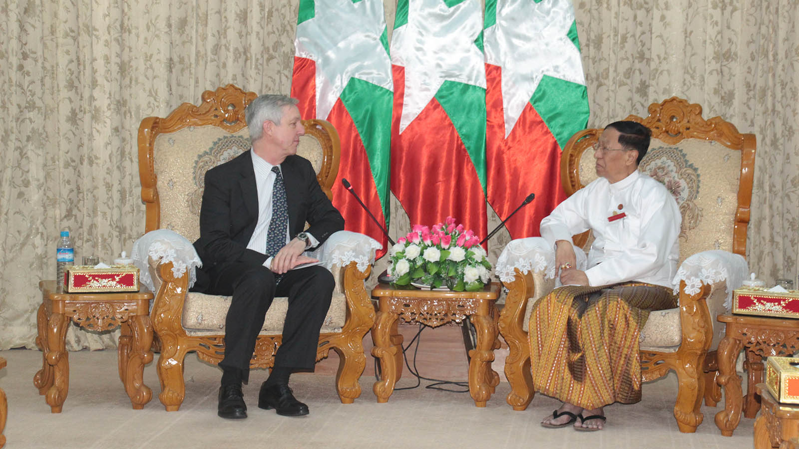 Chairman of the Union Election Commission U Hla Thein received a delegation led by Mr Tony Banbury, President of International Foundation for Electoral System (IFES), at his office in Nay Pyi Taw yesterday.