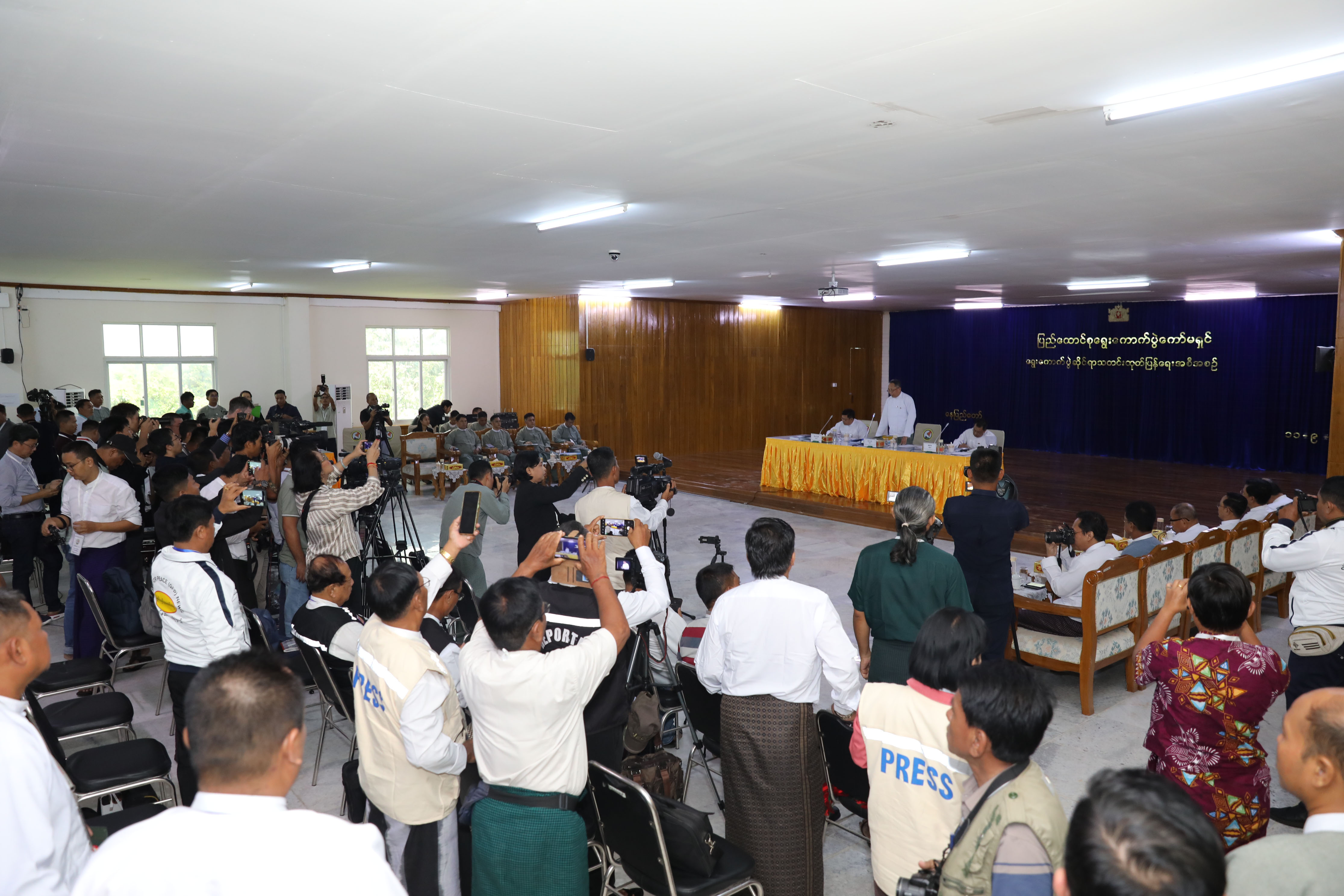 The event was attended by UEC members U Khin Maung Oo, U Aung Lwin Oo, and U My­int Thein, the Chairman and Sec­ond Vice-Chairman of the Myan­mar Press Council, responsible officials, staff members of the UEC office, as well as reporters from local media organizations and locally based foreign media agencies.