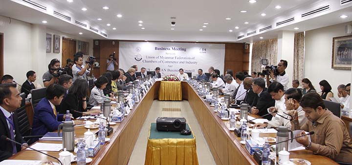 Union of Myanmar Federation of Chambers of Commerce and Industry (UMFCCI) and US-ASEAN Business Council delegation held a meeting in UMFCCI office yesterday afternoon.